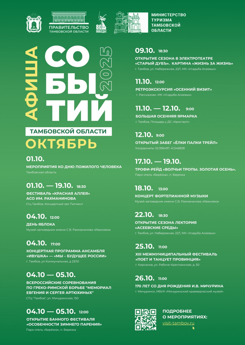 9 | 10:00 | Муниципальные соревнования по теннису среди учащихся образовательных организаций округа | МБОУ «Инжавинская ДШИ» | Бесплатный |